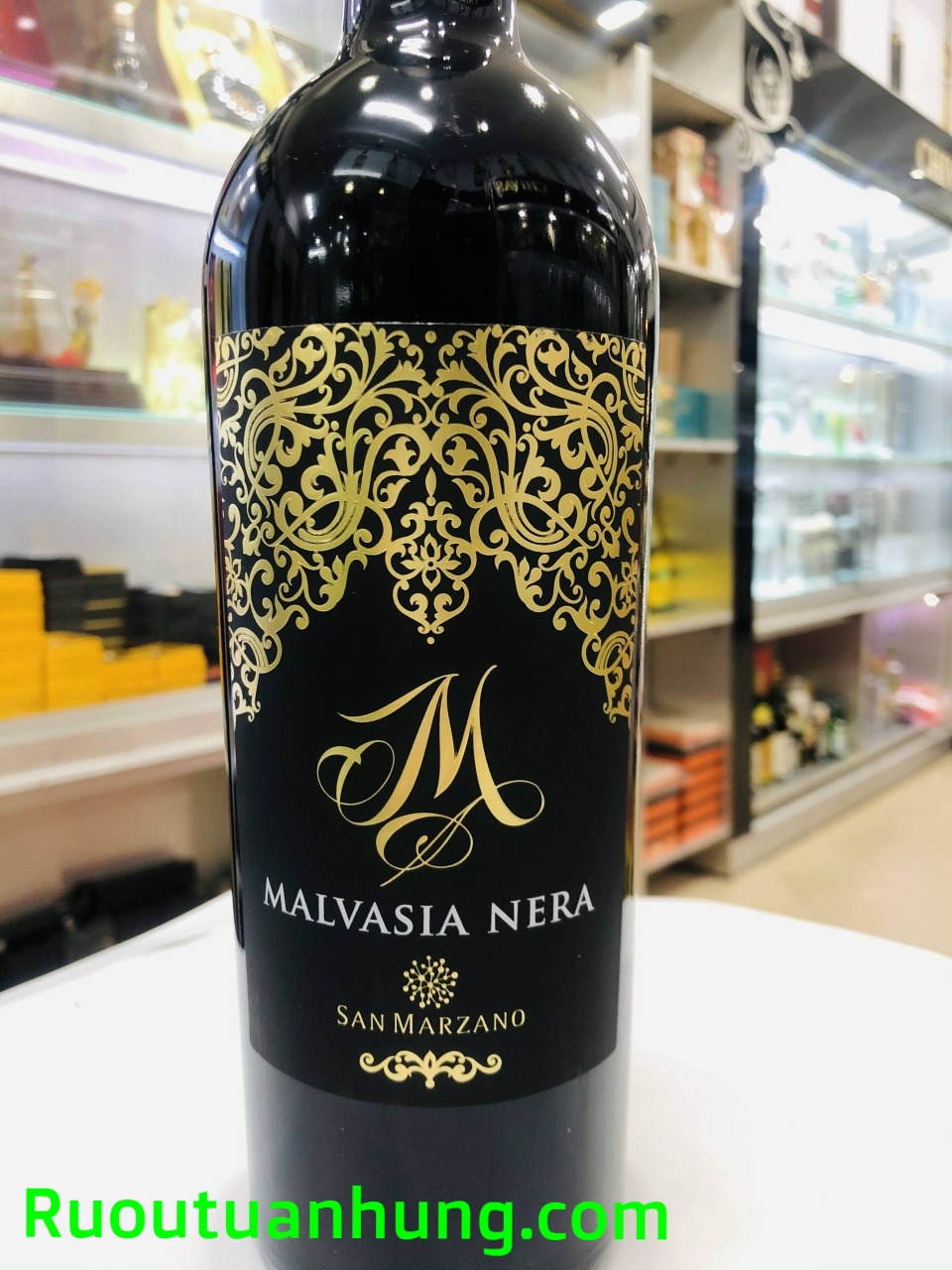 Nước Ý xinh đẹp đầy cám dỗ với những quán cà phê thơm lừng, nằm ở mọi góc đường, những món tráng miệng hấp dẫn, những chai rượu thượng hạng. Những loại rượu vang hảo hạng phải kể đến M Malvasia Nera, đến từ miền Nam nước Ý của hãng rượu danh tiếng San Marzano. Rượu Ý M Malvasia Nera là một chai rượu hảo hạng được làm từ giống nho Malvasia Nera. Giống nho này nổi tiếng trên thế giới, được dùng để chế tạo rượu vang. Nó đem đến hương vị và màu sắc đặc trưng cho từng chai rượu. Malvasia Nera được thu hút với màu đỏ ruby đậm, hương thơm phức tạp giữa hoa khô và trái cây chín, vị ngọt ngào quyến rũ của nho, táo và mận. Thêm chút cay nhẹ của tiêu đen và kết là vị chát của tannin. Hương vị quấn quýt nơi vòm họng.