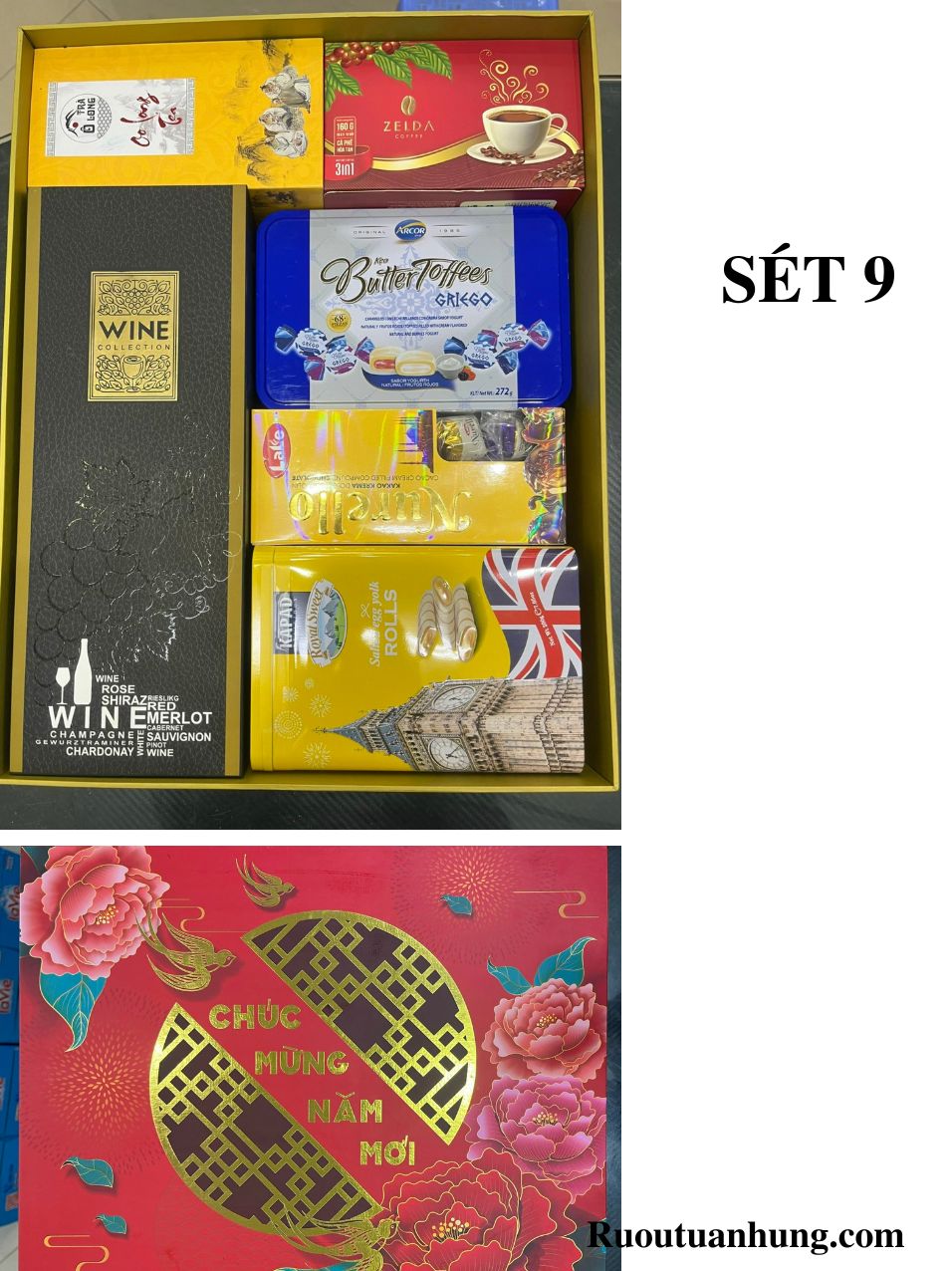 Sét gồm Rượu vang, Trà. Cà phê, Kẹo hoa quả, Socola, Bánh với gam màu phong phú mang đậm hương vị Tết, báo hiệu một năm đầy sung túc và hứng khởi. Sản phẩm có kèm theo túi xách đi kèm tiện lợi sẽ chiếm chọn ánh nhìn của bạn